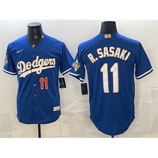 Men's Los Angeles Dodgers #11 Roki Sasaki Royal 2026 Alternate Gold Collection Stadium Stitched Baseball Jersey