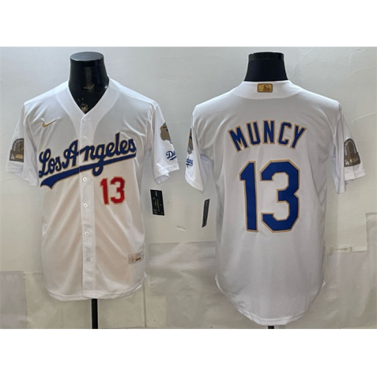 >Men's Los Angeles Dodgers #13 Max Muncy White 2026 Gold Collection 9x & B2B Champs Stitched Baseball Jersey