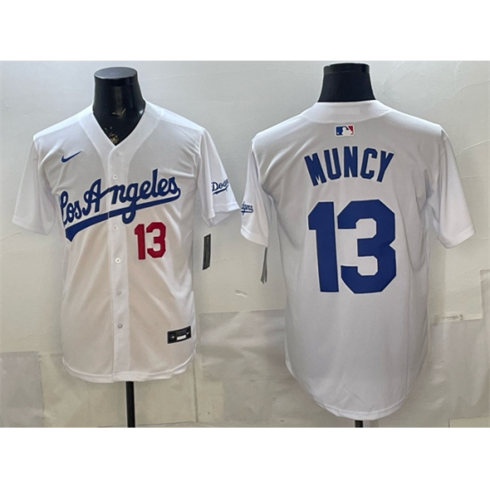 >Men's Los Angeles Dodgers #13 Max Muncy White Alternate Stadium Stitched Baseball Jersey