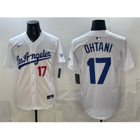 >Men's Los Angeles Dodgers #17 Shohei Ohtani White Alternate Stadium Stitched Baseball Jersey