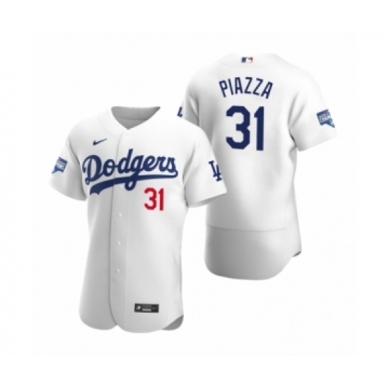 Men's Los Angeles Dodgers #31 Mike Piazza White 2020 World Series Champions Authentic Jersey