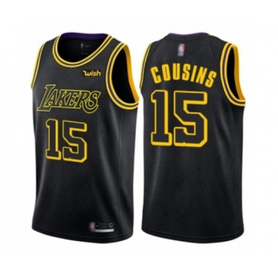 >Men's Los Angeles Lakers #15 DeMarcus Cousins Authentic Black City Edition Basketball Jersey