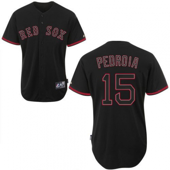 Home>MLB>Boston Red Sox>Dustin Pedroia>Men's Majestic Boston Red Sox #15 Dustin Pedroia Replica Black Fashion MLB Jersey