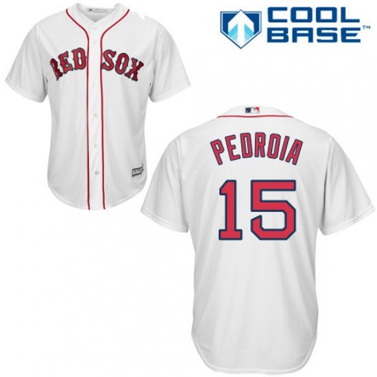 Home>MLB>Boston Red Sox>Dustin Pedroia>Men's Majestic Boston Red Sox #15 Dustin Pedroia Replica White Home Cool Base MLB Jersey