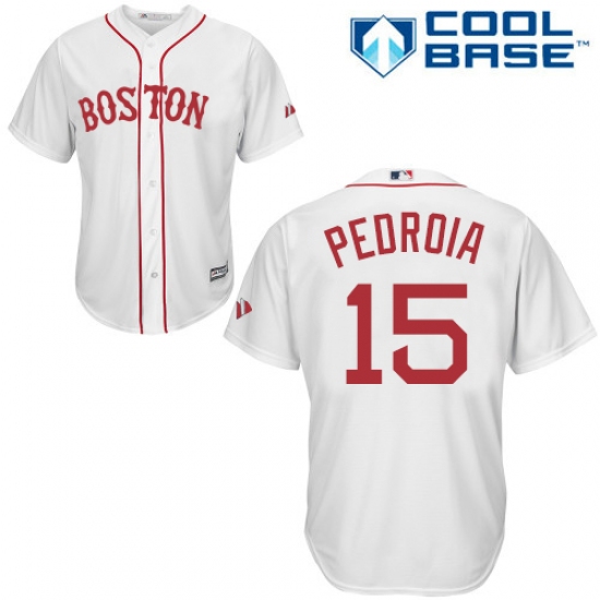 Home>MLB>Boston Red Sox>Dustin Pedroia>Men's Majestic Boston Red Sox #15 Dustin Pedroia Replica White New Alternate Home Cool Base MLB Jersey