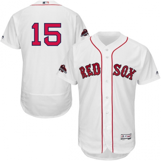 Men's Majestic Boston Red Sox #15 Dustin Pedroia White Home Flex Base Authentic Collection 2018 World Series Champions MLB Jersey