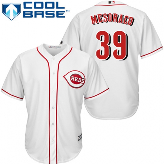 Home>MLB>Cincinnati Reds>Devin Mesoraco>Men's Majestic Cincinnati Reds #39 Devin Mesoraco Replica White Home Cool Base MLB Jersey
