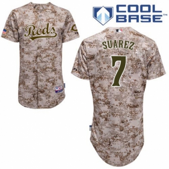 Men's Majestic Cincinnati Reds #7 Eugenio Suarez Authentic Camo Alternate Cool Base MLB Jersey