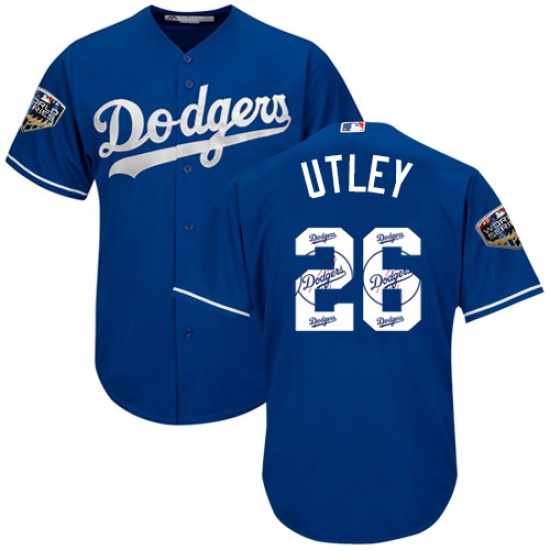 Men's Majestic Los Angeles Dodgers #26 Chase Utley Authentic Royal Blue Team Logo Fashion Cool Base 2018 World Series MLB Jersey