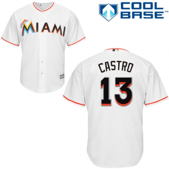 Men's Majestic Miami Marlins #13 Starlin Castro Replica White Home Cool Base MLB Jersey