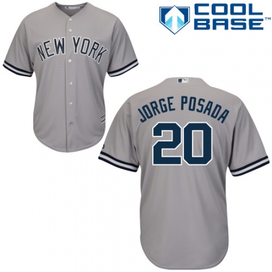 Men's Majestic New York Yankees #20 Jorge Posada Replica Grey Road MLB Jersey