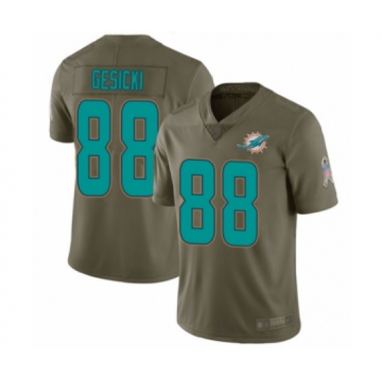>Men's Miami Dolphins #88 Mike Gesicki Limited Olive 2017 Salute to Service Football Jersey