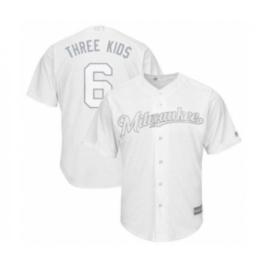 Men's Milwaukee Brewers #6 Lorenzo Cain Three Kid$ Authentic White 2019 Players Weekend Baseball Jersey