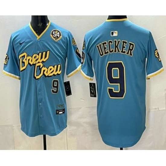 >Men's Milwaukee Brewers #9 Bob Uecker Blue City Connect Limited Jersey