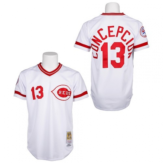 Men's Mitchell and Ness Cincinnati Reds #13 Dave Concepcion Authentic White Throwback MLB Jersey