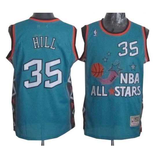 Men's Mitchell and Ness Detroit Pistons #35 Grant Hill Authentic Light Blue 1996 All Star Throwback NBA Jersey