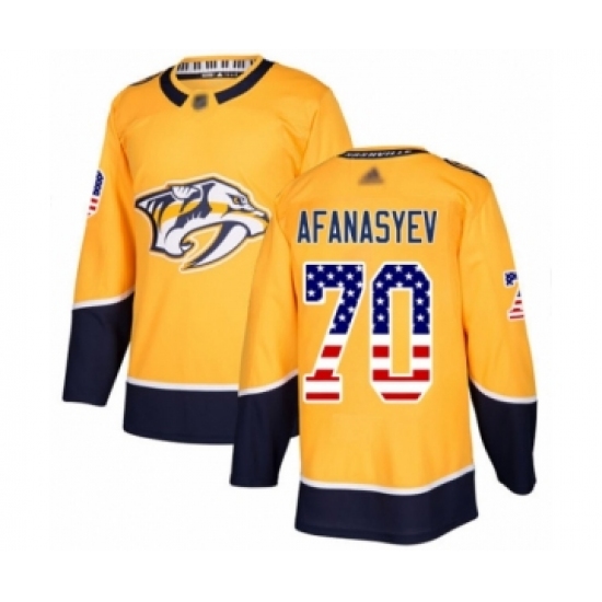 Men's Nashville Predators #70 Egor Afanasyev Authentic Gold USA Flag Fashion Hockey Jersey