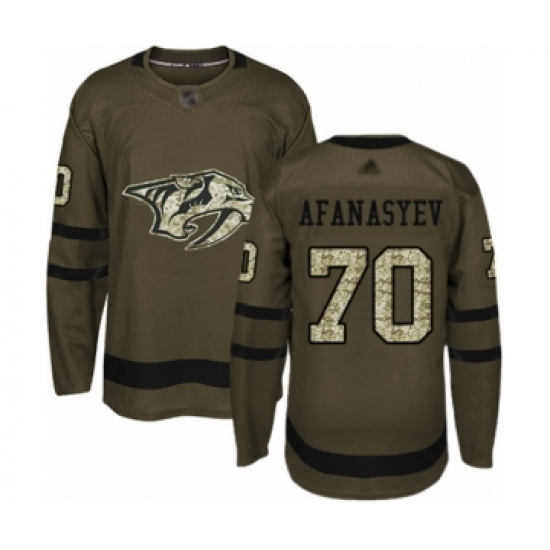 >Men's Nashville Predators #70 Egor Afanasyev Authentic Green Salute to Service Hockey Jersey