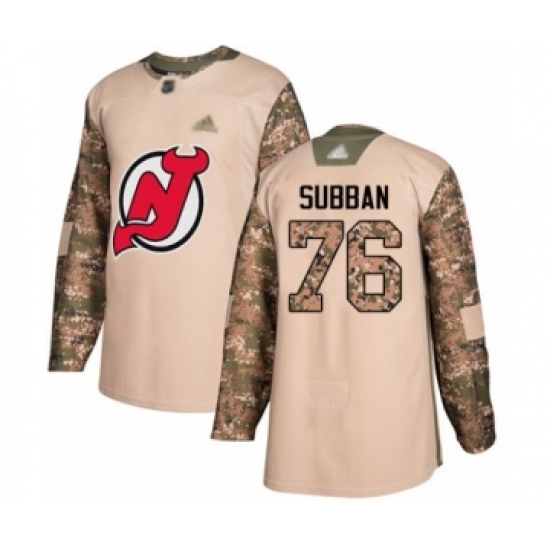 >Men's New Jersey Devils #76 P. K. Subban Authentic Camo Veterans Day Practice Hockey Jersey