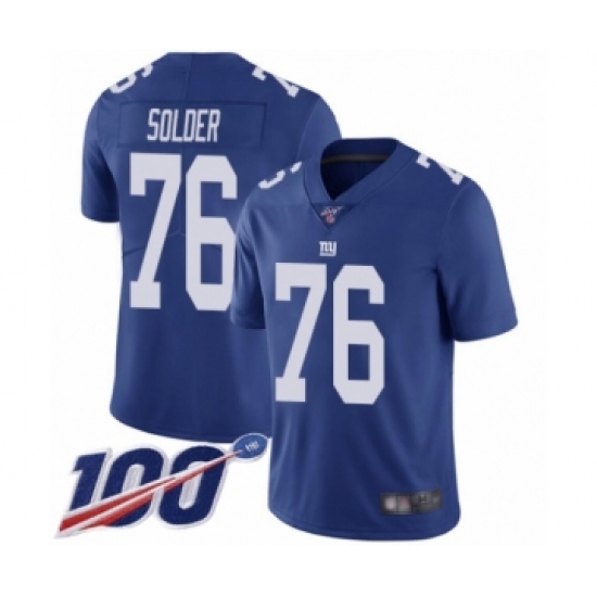 Men's New York Giants #76 Nate Solder Royal Blue Team Color Vapor Untouchable Limited Player 100th Season Football Jersey