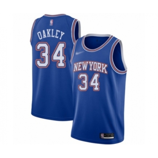 >Men's New York Knicks #34 Charles Oakley Authentic Blue Basketball Jersey - Statement Edition