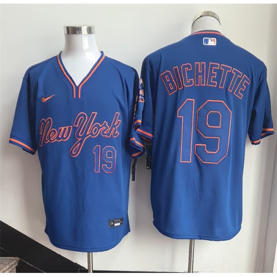 >Men's New York Mets #19 Bo Bichette Blue Stitched Baseball Jersey