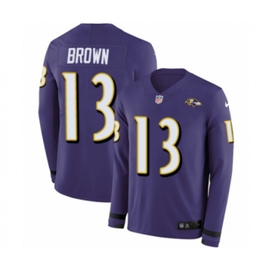 Men's Nike Baltimore Ravens #13 John Brown Limited Purple Therma Long Sleeve NFL Jersey