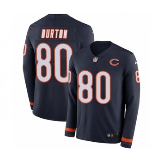 >Men's Nike Chicago Bears #80 Trey Burton Limited Navy Blue Therma Long Sleeve NFL Jersey