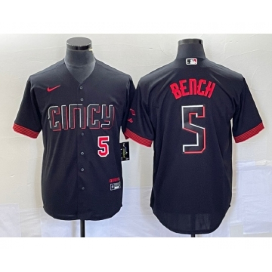 >Men's Nike Cincinnati Reds #5 Johnny Bench Number Black 2023 City Connect Cool Base Stitched Baseball Jersey1