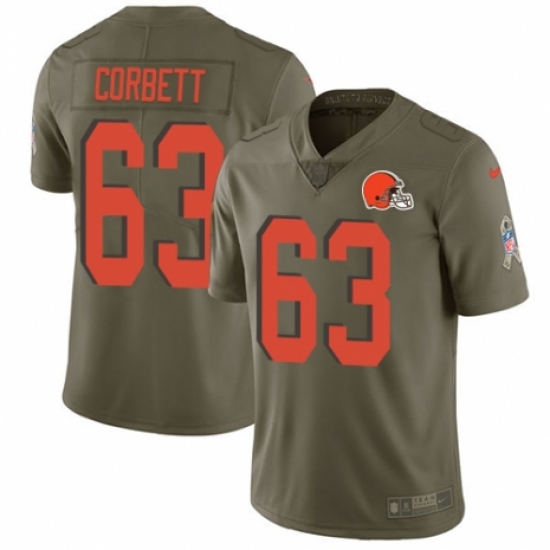 >Men's Nike Cleveland Browns #63 Austin Corbett Limited Olive 2017 Salute to Service NFL Jersey