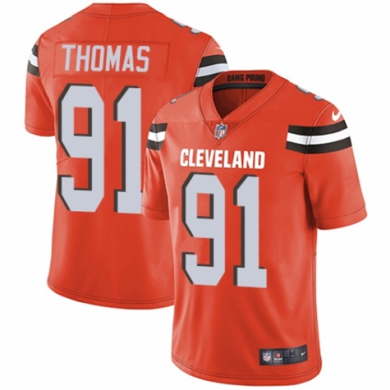 >Men's Nike Cleveland Browns #91 Chad Thomas Orange Alternate Vapor Untouchable Limited Player NFL Jersey