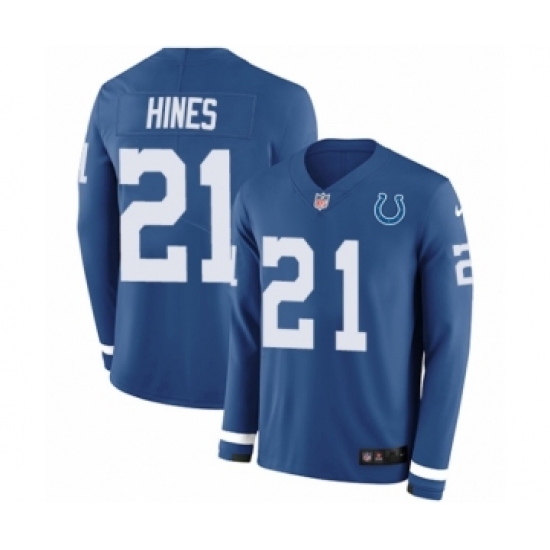 Men's Nike Indianapolis Colts #21 Nyheim Hines Limited Blue Therma Long Sleeve NFL Jersey