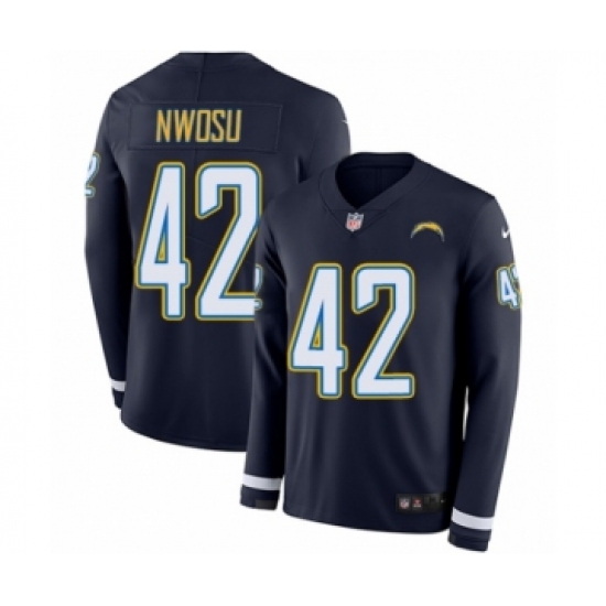 Men's Nike Los Angeles Chargers #42 Uchenna Nwosu Limited Navy Blue Therma Long Sleeve NFL Jersey