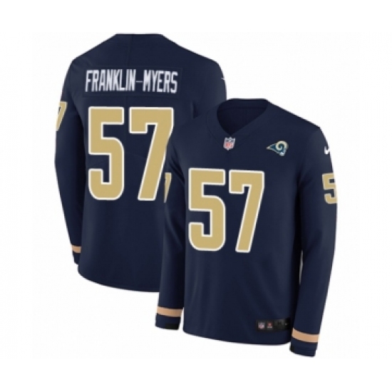 >Men's Nike Los Angeles Rams #57 John Franklin-Myers Limited Navy Blue Therma Long Sleeve NFL Jersey