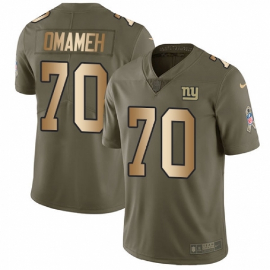>Men's Nike New York Giants #70 Patrick Omameh Limited Olive Gold 2017 Salute to Service NFL Jersey