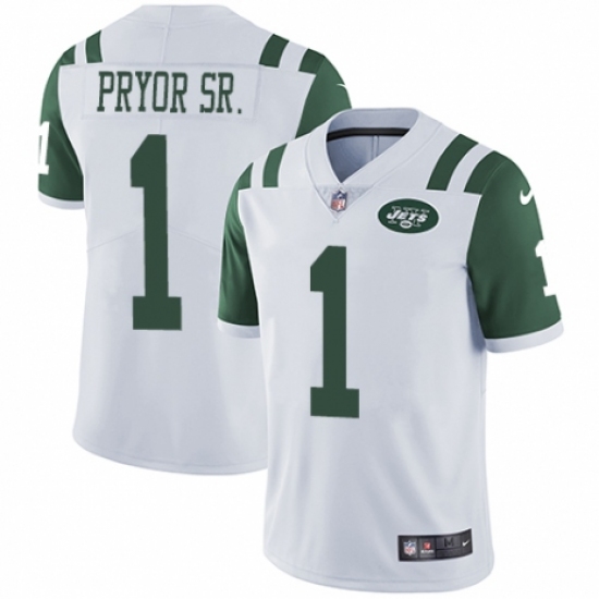 Men's Nike New York Jets #1 Terrelle Pryor Sr. White Vapor Untouchable Limited Player NFL Jersey