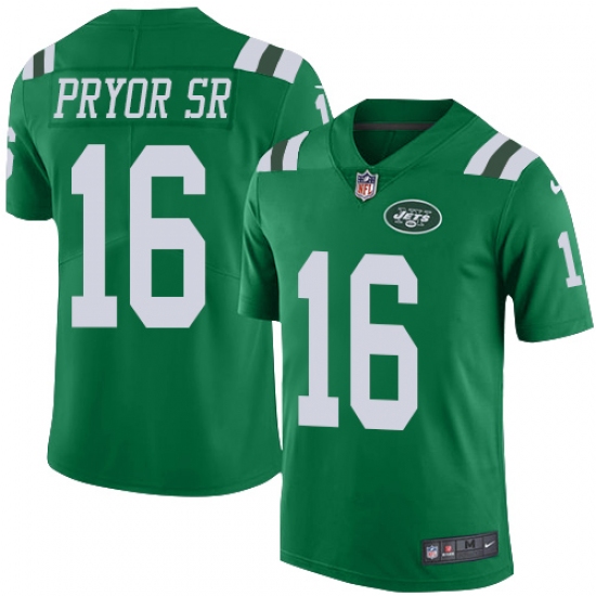 >Men's Nike New York Jets #16 Terrelle Pryor Sr. Limited Green Rush Vapor Untouchable NFL Jersey