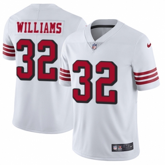 >Men's Nike San Francisco 49ers #32 Joe Williams Limited White Rush Vapor Untouchable NFL Jersey
