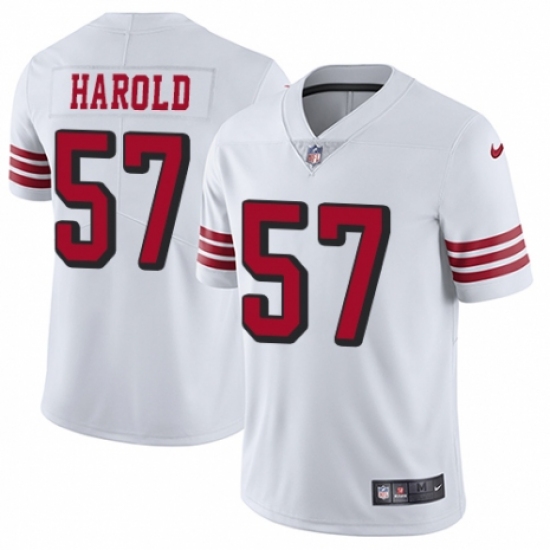>Men's Nike San Francisco 49ers #57 Eli Harold Limited White Rush Vapor Untouchable NFL Jersey