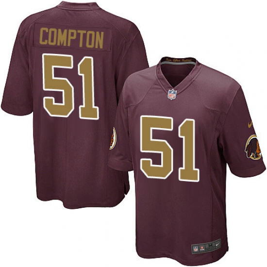 Men's Nike Washington Redskins #51 Will Compton Game Burgundy Red/Gold Number Alternate 80TH Anniversary NFL Jersey
