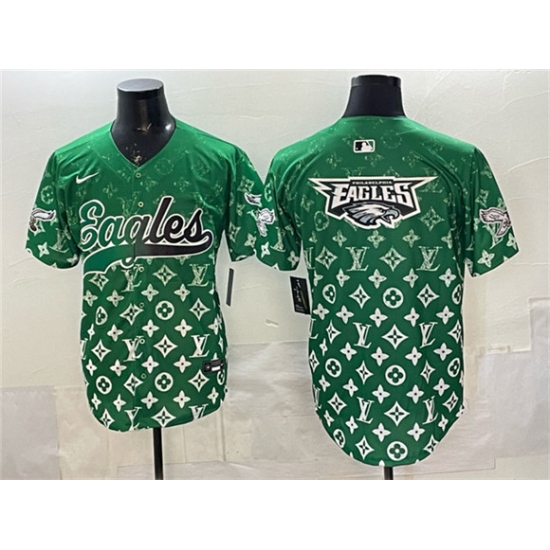 >Men's Philadelphia Eagles Team Big Logo Green With Limited Stitched Baseball Jersey