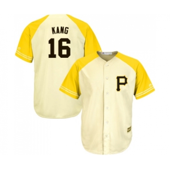 >Men's Pittsburgh Pirates #16 Jung-ho Kang Replica Cream Gold Exclusive Baseball Jersey