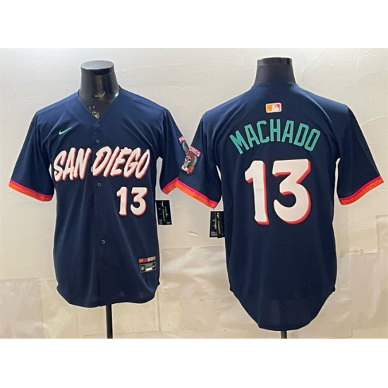 >Men's San Diego Padres #13 Manny Machado Obsidian 2026 City Connect Limited Stitched Baseball Jersey