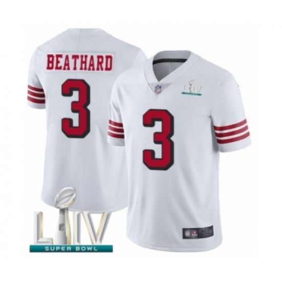 >Men's San Francisco 49ers #3 C. J. Beathard Limited White Rush Vapor Untouchable Super Bowl LIV Bound Football Jersey