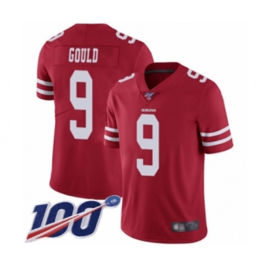 Men's San Francisco 49ers #9 Robbie Gould Red Team Color Vapor Untouchable Limited Player 100th Season Football Jersey