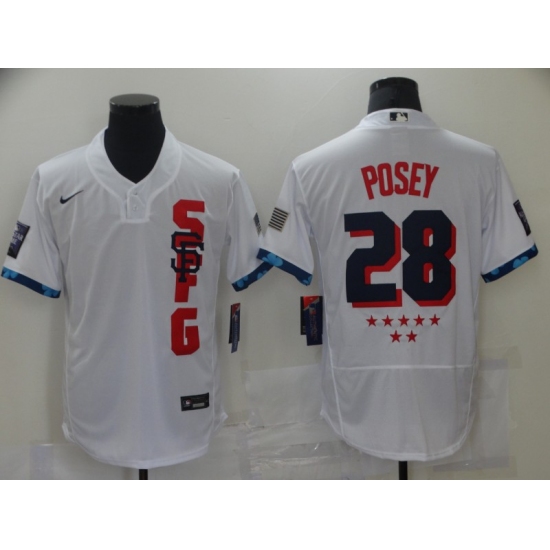 >Men's San Francisco Giants #28 Buster Posey Nike White 2021 MLB All-Star Game Replica Jersey