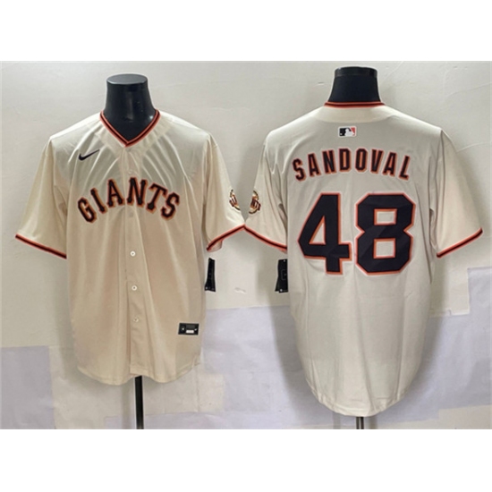 >Men's San Francisco Giants #48 Pablo Sandoval Cream 2024 Home Limited Stitched Baseball Jersey