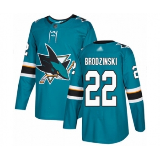 >Men's San Jose Sharks #22 Jonny Brodzinski Authentic Teal Green Home Hockey Jersey