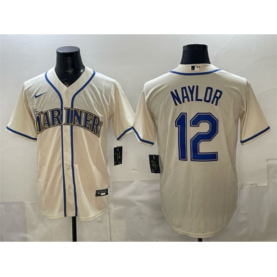 >Men's Seattle Mariners #12 Josh Naylor Cream Alternate Stitched Baseball Jersey