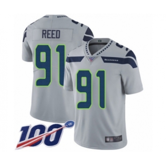 Men's Seattle Seahawks #91 Jarran Reed Grey Alternate Vapor Untouchable Limited Player 100th Season Football Jersey